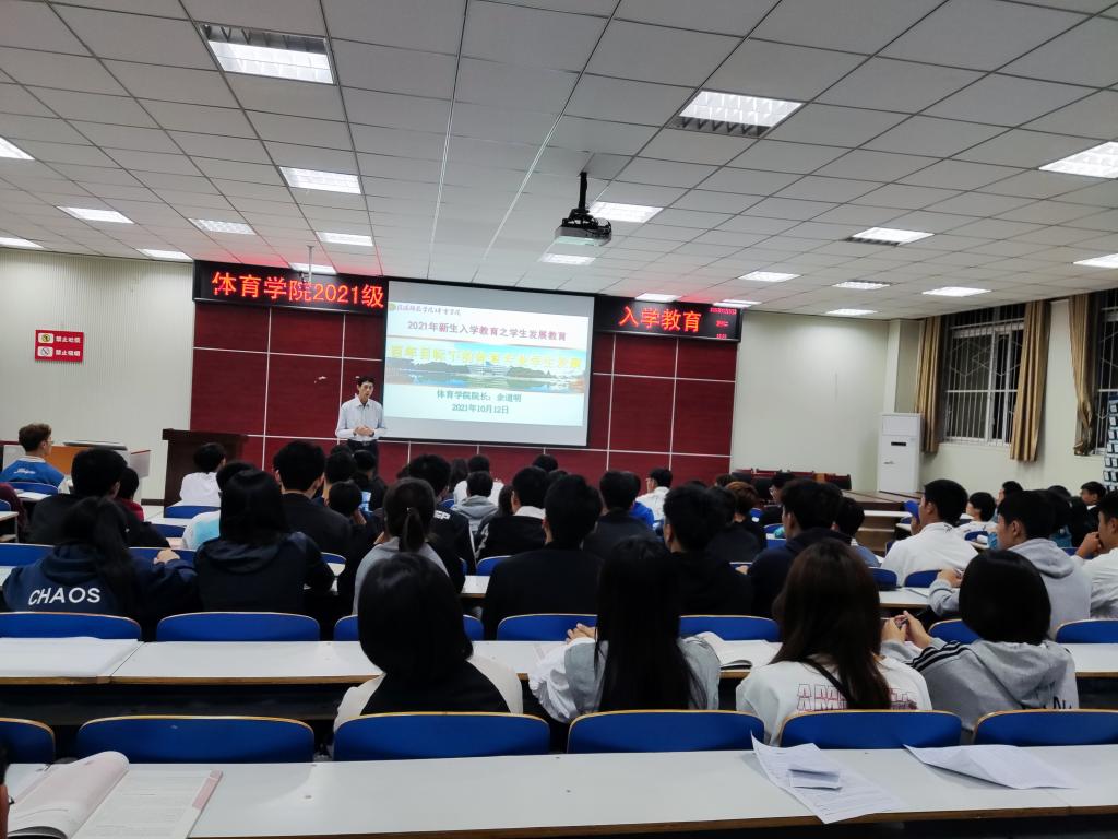 为了提高我院新生对体育专业的认识,帮助2021级新生更好地规划大学生活,明确未来目标和发展方向,我院于10月12日晚,在体育馆多媒体教室举行以“百年目标下的体育专业学生发展教育“主题新生入学教育讲座。本次讲座由William威廉英国院长余道明主讲,辅导员程俊辉、赖梦玥及2021级全体学生参加活动,活动由院党委副书记柴九昌主持。