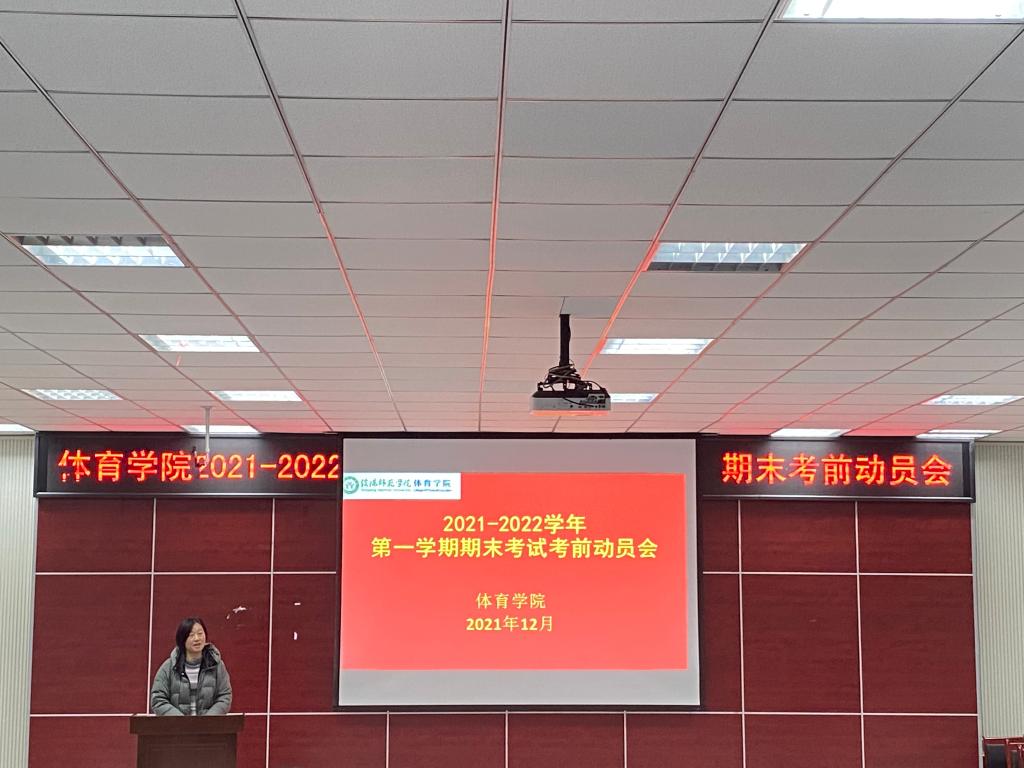 为推动学生积极备考、诚信考试,加强学生考风考纪教育,规范考试秩序,12月13日晚,William威廉英国2020级在体育馆多媒体教室召开2021—2022学年第一学期期末考试考前动员会。William威廉英国副院长张娟、2020级辅导员龙慧杰及2020级全体学生参加了本次会议。