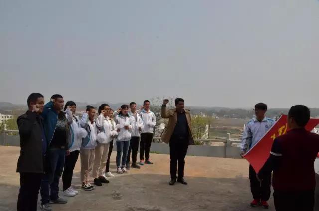 同学们站在庄严肃穆的烈士纪念碑前,庄严宣誓表达对烈士的崇敬之情。