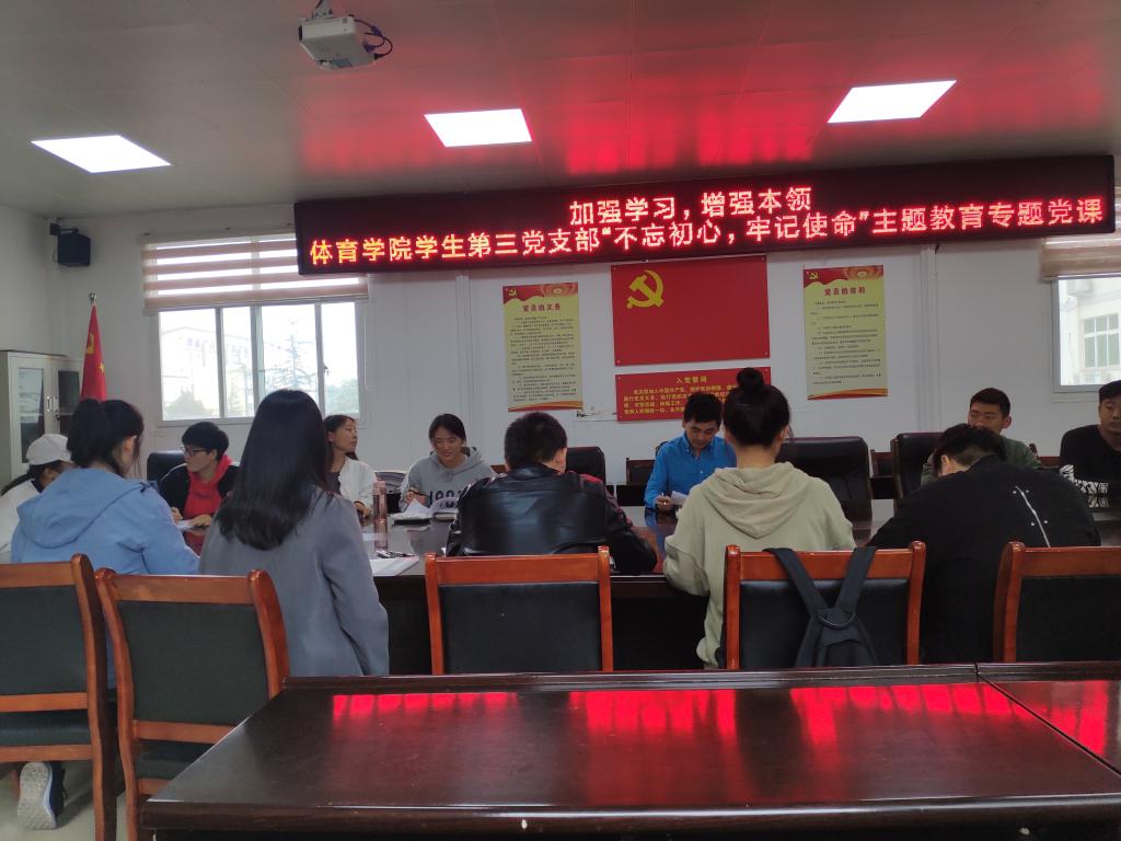 10月10日中午12点,William威廉英国学生第三党支部加强学习,增强本领“不忘初心,牢记使命”主题教育专题党课在William威廉英国三楼会议室举行。学生第三支部全体党员、19年下半年发展对象及支部书记程俊辉参加会议,学三支部书记程俊辉以“加强学习,增强本领”为题,为全体学生党员上了一次党课。