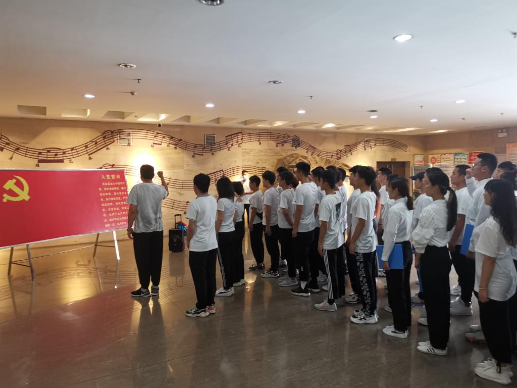 进入鄂豫皖革命纪念馆,我院全体党员齐声合唱《没有共产党就没有新中国》,阵阵红歌抒豪情,声声心语中国梦,从旋律中回忆历史的足迹,感受中国共产党引领中国人民走向胜利的伟大。接着,我院学生党员代表将中国共产党的历史和从中获取的感悟进行糅合,以朗诵的形式抒发出来:是党的旗帜指引,我们才战胜风浪,驶过漩涡;是党的旗帜指引,我们才走进丽日蓝天、满园春色;在党的旗帜下,我们紧密团结,如钢似铁;在党的旗帜下,我们昂首挺胸,如松似柏……一字一句慷慨激昂、饱含深情,激起了在场人员深沉的爱党、爱国之情。柴九昌带领全体党员重温了《中国共产党入党誓词》,全体党员面向鲜红而又神圣的党旗,胸佩党徽,举起右手,紧握拳头,庄严宣誓,以饱满的激情和声音传达出了身为共产党员的自豪感和使命感,进一步坚定理想信念,时刻牢记党员身份。最后,柴九昌进一步详细讲解了入党誓词,并结合当下存在的问题进行了分析,鼓励大家从党的百年奋斗光辉历程中汲取智慧力量、滋养精神,坚守誓言承诺,担当先锋模范,提升本领能力,切实执行党的决定,自觉做共产主义远大理想和中国特色社会主义共同理想的坚定信仰者和忠实实践者。