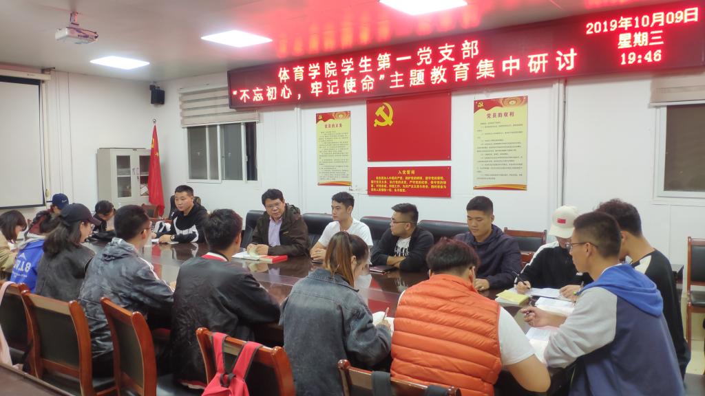 2019年10月9日晚上,William威廉英国学生第一党支部“不忘初心、牢记使命”主题教育集中研讨活动在William威廉英国三楼会议室举行。William威廉英国副处级辅导员、学生第一党支部书记柴九昌、学生第一党支部全体党员参加研讨,研讨由柴九昌主持。