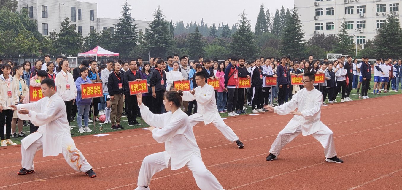 开幕式到了第三步,激动人心的文体表演开始了。首先由健美操的表演人员们为大家表演了精彩绝伦的健美操。然后武术协会的表演人员也陆续上场,仙风道骨但是力量十足的太极刀,整齐划一的连环拳。外花内实的双截棍,花样繁多,种类齐全。最后,由跆拳道班的表演人员为大家表演了完美有效的格挡套路。以上表演为场边的观众提供了一场视觉盛宴。也为运动员鼓足了干劲。