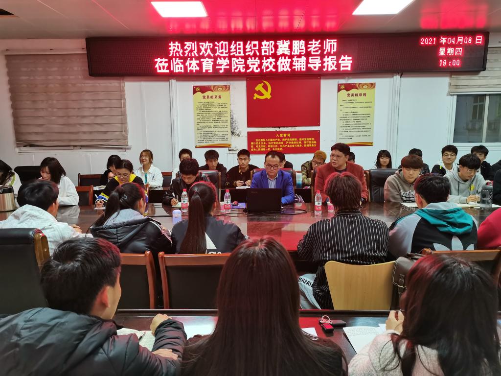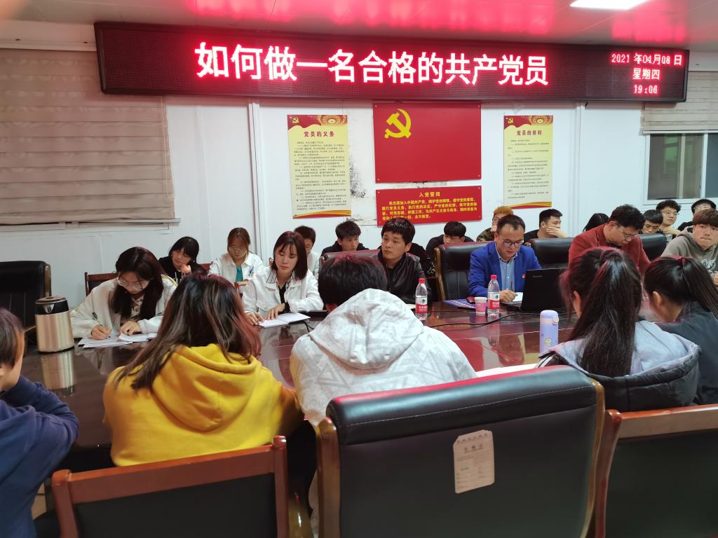 4月8日晚,信阳师范学院党委组织部组织科科长冀鹏老师为我院党校第十期入党积极分子讲“如何做一名合格的共产党员”专题报告,副处级辅导员柴九昌老师、第10期党员入党积极分子培训班班主任程俊辉与60余名入党积极分子参加,报告会由柴九昌主持。