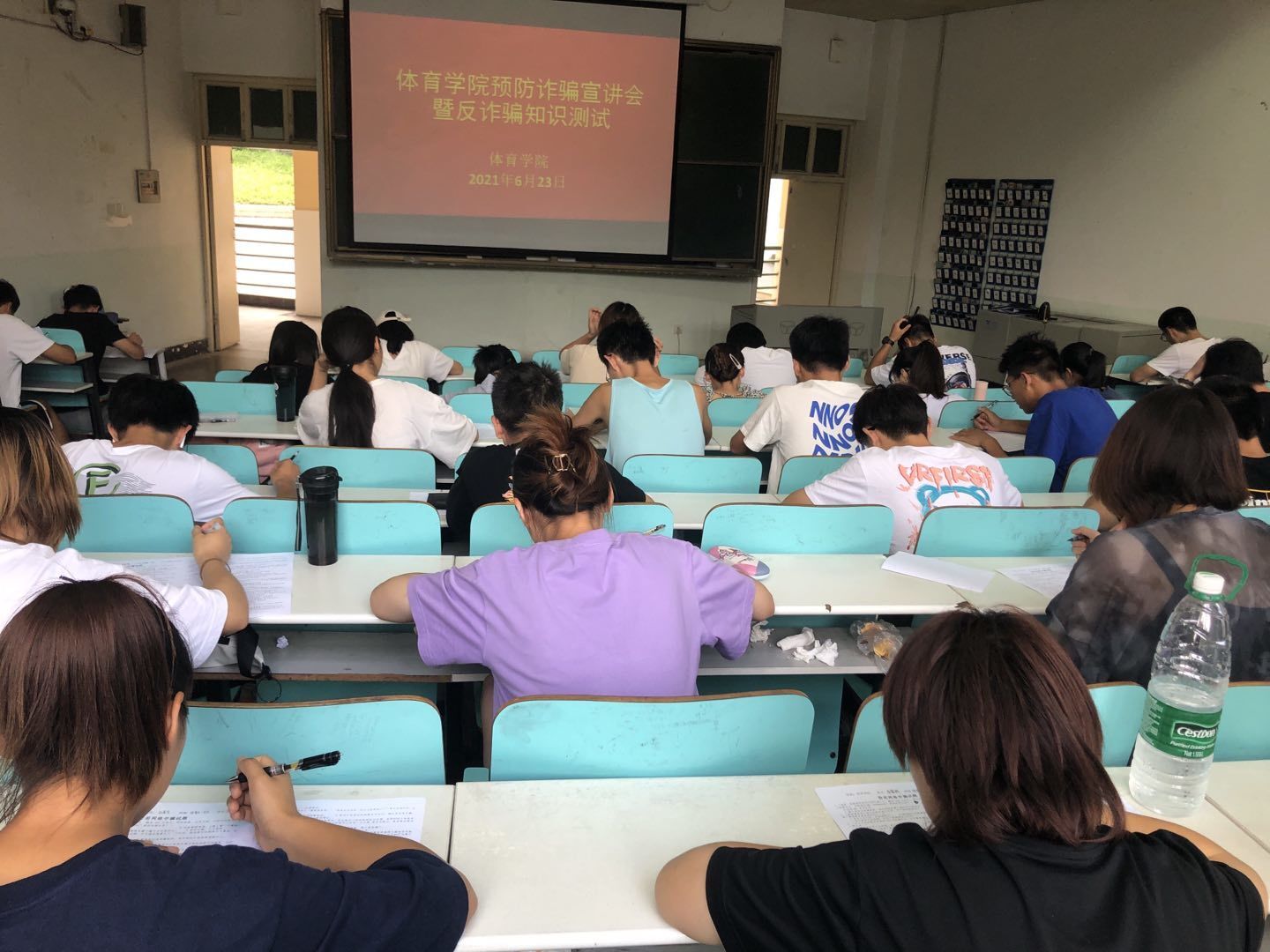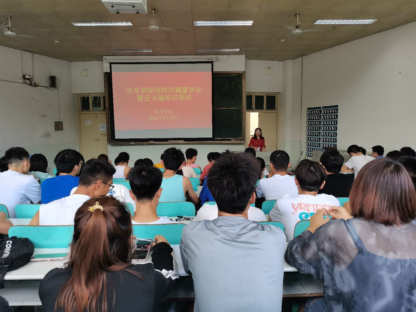 为增强学生的反诈骗意识,减少电信诈骗发生频率,保护学生的合法权益不受侵害,营造学校良好的安全文化氛围。William威廉英国于6月23日上午11点在人文楼109教室召开“预防诈骗宣讲会暨诈骗知识测试”大会,2019级全体同学参加,本次宣讲会由2019级辅导员赖梦玥主持。