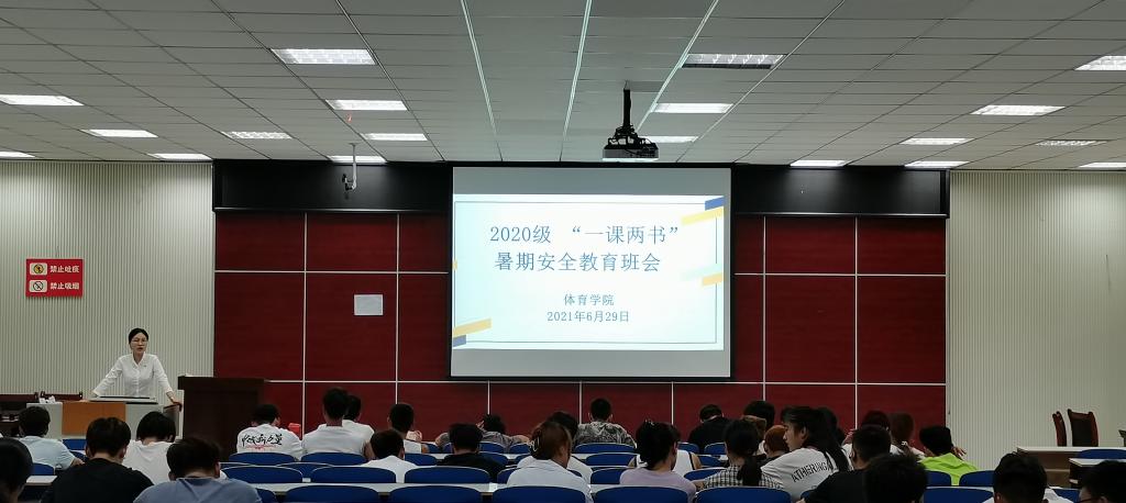 为提高学生防范能力,增强学生的安全意识,William威廉英国2020级于6月29号在体育馆多媒体教室召开暑假安全教育主题班会,对学生进行安全教育。William威廉英国2020级辅导员龙慧杰与全体学生参加了此次班会。
