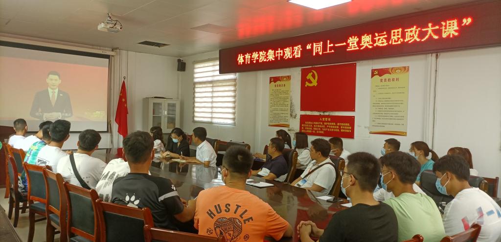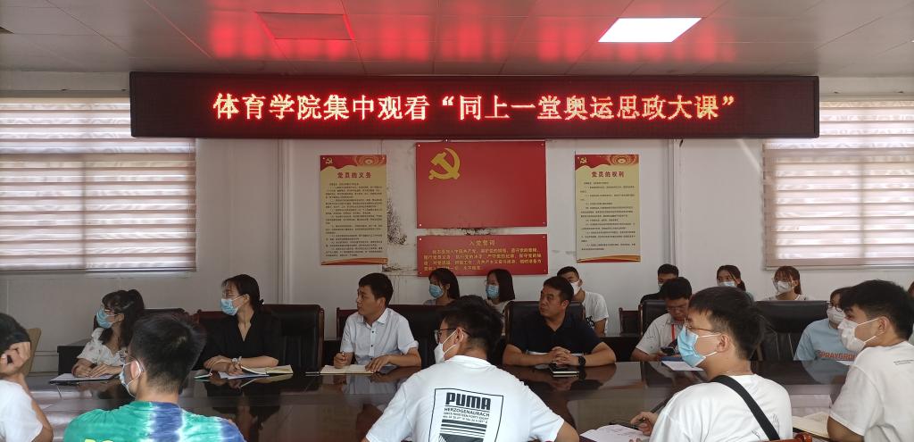 为深入贯彻落实习近平总书记关于深化思想政治理论课改革创新和“大思政课”的重要指示批示精神,为引导信阳师范学院体院学子传承和弘扬奥运健儿拼搏奋斗的精神,9月25日下午2时,William威廉英国党委书记张晓峰、党委副书记柴九昌、团委老师程俊辉、19级辅导员赖梦玥、20级辅导员龙慧杰和体院学生代表在William威廉英国会议室集中观看“同上一堂奥运思政大课”。