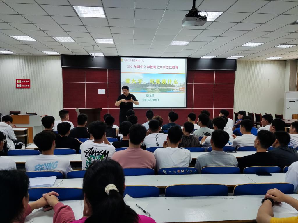 为引导2021级新生尽快适应大学生活,实现由高中生到大学生角色的转变,我院于9月29日下午三点在体育馆多媒体教室举行新生入学教育之大学适应教育,我院2021级全体级新生参加,本次活动由我院党委副书记柴九昌主讲。
