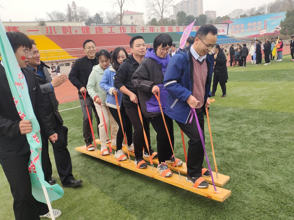活动以“鼓动我心,齐心协力”擂鼓跑旗表演和“武动青春,携手奋进”的武术表演拉开帷幕。接着,王文臣宣布活动正式开始。辅导员老师被分为学史明理队、厚德崇实队、不忘初心队、立德树人队等十支参赛队伍。队伍在志愿者的带领下,依次有序参加了螃蟹奔跑、无轨电车、旋风跑、拔河五个比赛项目和射箭体验项目。在拔河比赛项目中,队员们默契配合,商量战术,相互鼓气,充分发挥了团队合作的优势;在体验项目中,参赛人员感受到了射箭的乐趣,品味了传统文化的魅力。比赛期间大家争先恐后,活动现场人声鼎沸,加油声、呐喊声、擂鼓声热闹非凡,在一轮轮释放身心、挖掘潜能的活动后,学史力行队荣获团体第一名,立德树人队荣获团体第二名,砥砺前行队荣获团体第三名。最后,活动在合唱《没有共产党就没有新中国》的歌声中圆满结束。