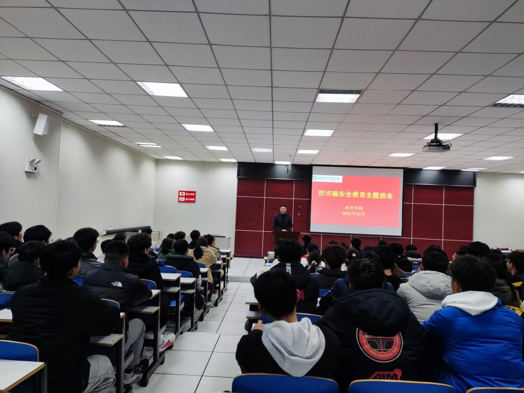 为增强大学生法治观念,提高安全防范意识,杜绝校园诈骗情况的发生。12月14日,我院举办了“防诈骗安全教育”的主题班会。体院学院党委副书记柴九昌、团委老师程俊辉,2021级全体学生、18级、19级、20级班委参加会议。