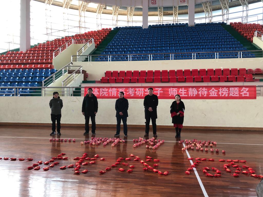 福袋摆成的“一战成硕”、苹果摆成的“一研为定”、暖心的礼物、热情的问候、亲切的嘱托,让备战考研的学生深切的感受到学院对他们的关怀和期望。大家纷纷标表示,一定会脚踏实地、沉着应对一周后研究生笔试,用优异的成绩回报学校。