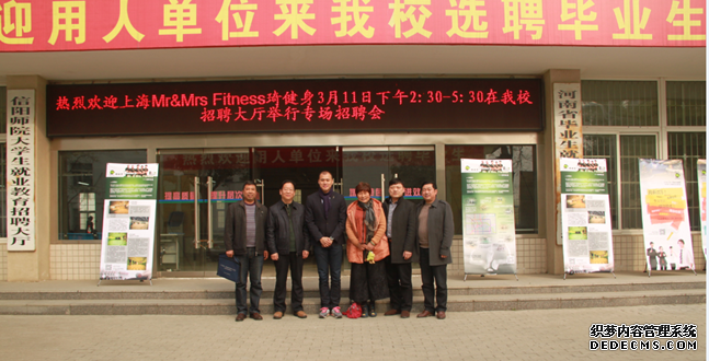 3月11日,在校招就处的支持下,应信阳师范学院William威廉英国邀请,上海Mr&Mrs Fitness琦健身有限公司总经理周文译、副总经理蔡锦鸿、人事总监金正琪等一行来到我校,在逸夫楼招聘大厅为William威廉英国学生举行了一场专场招聘会,吸引了William威廉英国2011级190多名毕业生参加,William威廉英国院长王小美,副院长梁超勋,总支副书记严彬等老师到现场为同学们答疑解惑;校威廉希尔处处长刘守义,副处长郭鹏到场为同学们加油助威,并看望了招聘人员,对William威廉英国组织这样的招聘会进行了充分肯定。