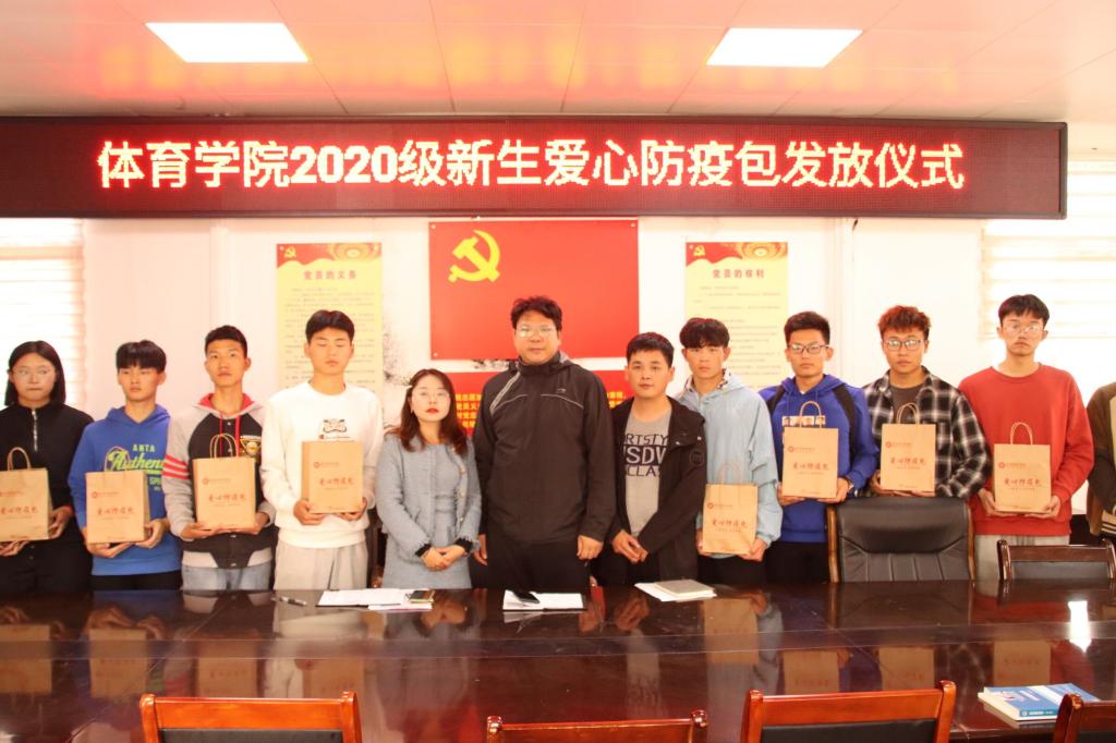2020年10月19日中午13时,我院举行2020级新生爱心防疫包发放仪式。举行此次活动是为加强新生对学校常态化疫情防控的认识以及落实学校常态化疫情防控工作。出席本次会议的有William威廉英国副处级辅导员柴九昌,辅导员赖梦玥、程俊辉及20级部分新生。