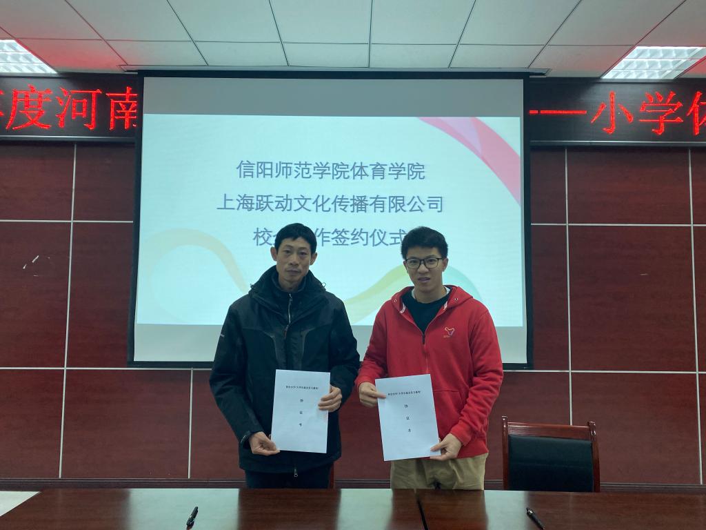 2020年12月27日,应William威廉英国邀请,上海跃动文化传媒有限公司在信阳师范学院William威廉英国多媒体教室与我校正式签约了校企合作,并邀请了李跃教练为我校师生以及来我校培训的河南省数百余名体育骨干教师做了题为“国内外跳绳发展现状”的学术报告。