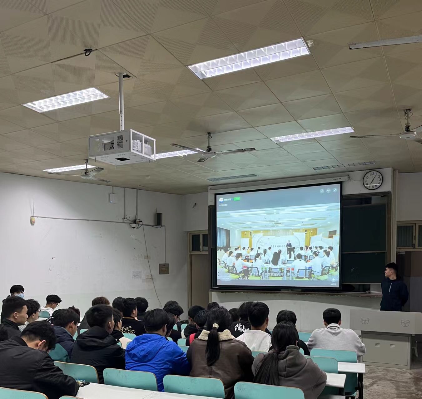 班会上,同学们一起观看了“遇见更改的自己”主题心理健康公开课,同学们对自己进行自画像和自我评价,与身边同学进行交流。班长就如何将现实自我渐渐成为理想自我进行讲解,引导同学们在学业、科研、实践竞赛、资格证书考取和团学活动5个方面制定具体详实的计划,努力成为理想中的模样。