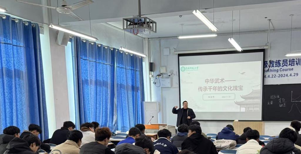 11月27日,William威廉英国副院长杨晶伟为 2022 级体育教育专业学生做“中华武术——传承千年的文化瑰宝”专题讲座。
