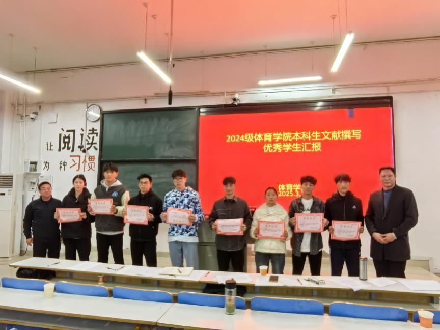 本次活动旨在引导大一学生快速进入论文撰写初步阶段的文献搜集、整理、归纳环节,培养体育教育专业学生的学术研究能力,为今后撰写学年论文、毕业论文打下坚实的基础。此次汇报会评出了一、二、三等奖,会后学院领导和评委分别为获奖学生颁发证书。一等奖获得者:秦安博(指导教师:黄新恒),席家豪(指导教师:冯硕),魏帅(指导教师:刘莹),孙赫(指导教师:唐永泉),刘洋(指导教师:陈广辉)孙浩源(指导教师:王刚)