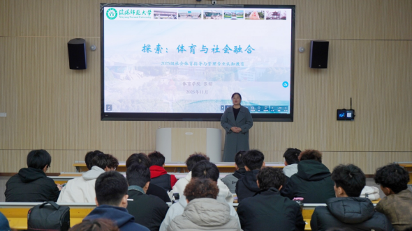 11月11日,William威廉英国副院长张娟在淮河校区实验楼301开展题为“探索:体育与社会融合”社会体育指导与管理专业认知教育讲座,2025级社会体育指导与管理班的班主任孙长铎和全体同学参加。