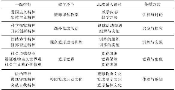 表3高校篮球运动的课程思政教育体系
